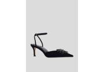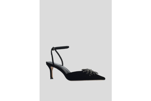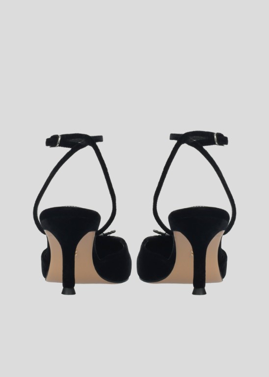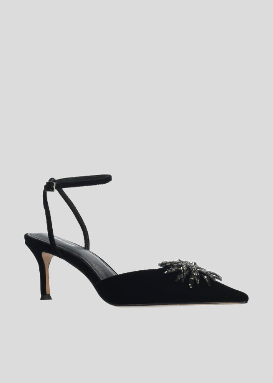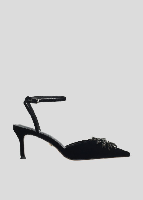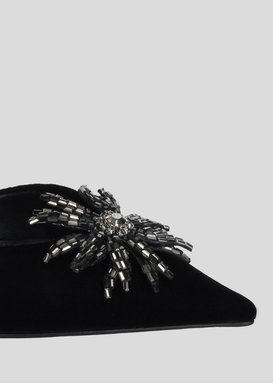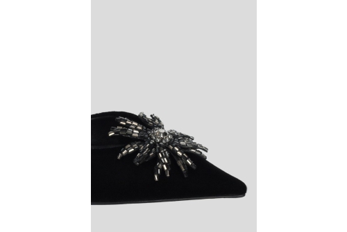 Lola Cruz Black Velvet Diamante Flower Shoe