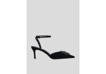 Lola Cruz Designed and made in spain from the highest qaulity leathers. This stylish and elegant velvet and crystal flower court shoe, features sumptuous luxury velvet over a soft leather shoe, stunning crystal flower on the front and elegant flattering slim ankle strap, and feminine slim heel. This beautiful shoe would be the perfect addition to your autumn winter evening wardrobe.