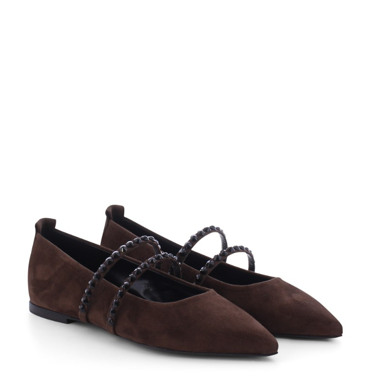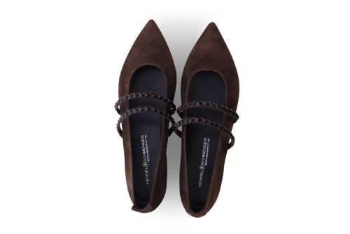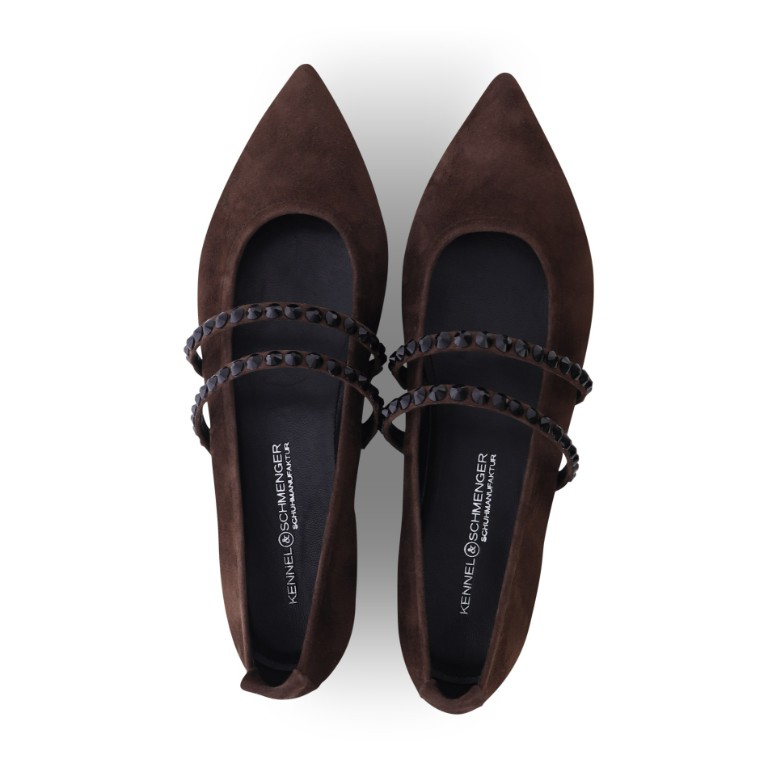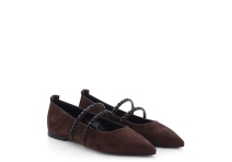 Beautiful pointed flat by Kennel & Schmenger with swarovski crystals on a double strap. Chocolate suede perfect for this season