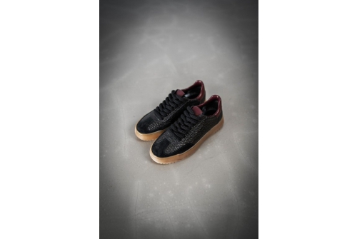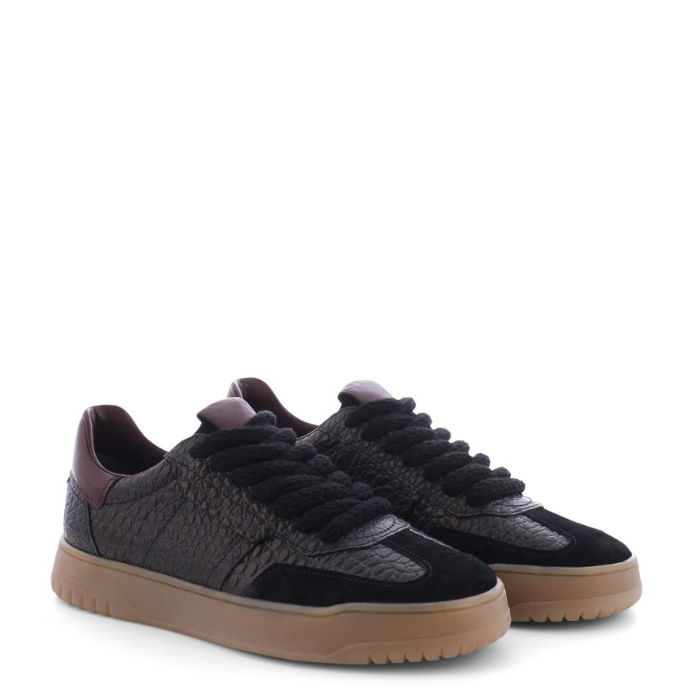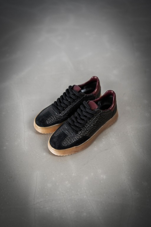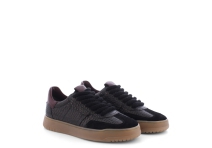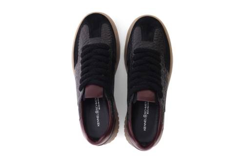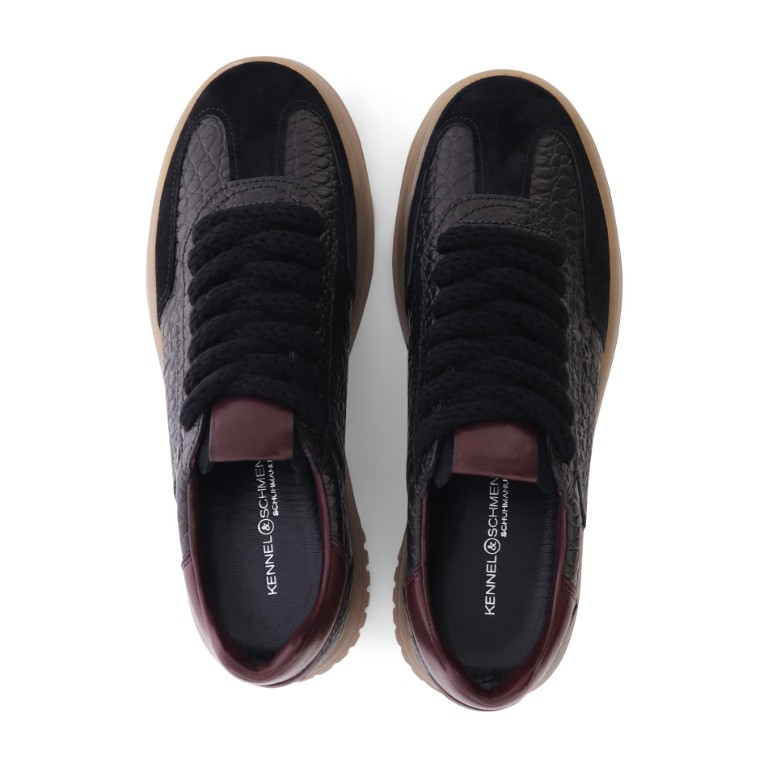Kennel & Schmenger trainers with black textured leather upper and mulberry detailing.