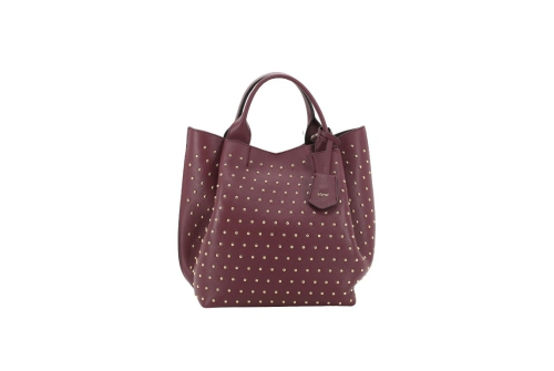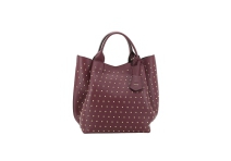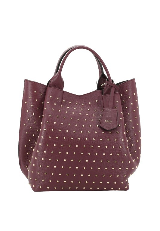 Stunning leather bag in bordeaux leather with gold stud detail.