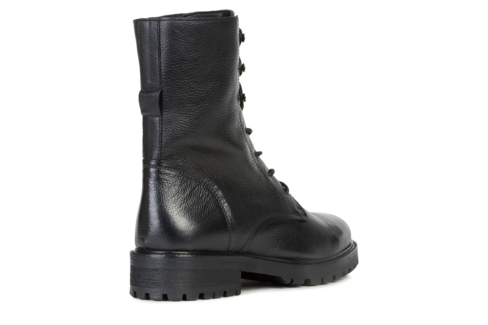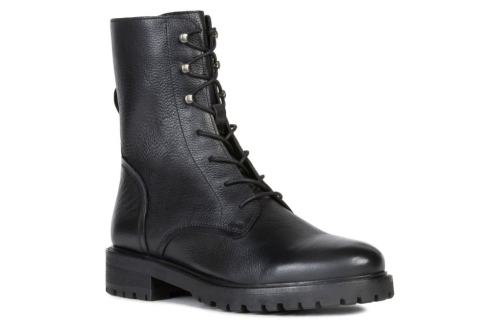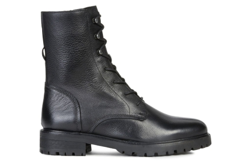 Geox womans ankle boot, biker style with a contemporary design with compfort at its best. With a sleek contemporary silhouette rendered entirely in black nappa, the casual-looking Hoara ankle boot exudes urban stylishness and will lift any informal evening outfit with edgy appeal without you having to sacrifice even an ounce of comfort and breathability.