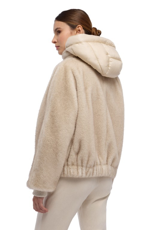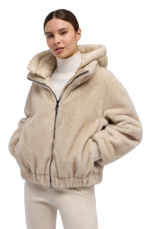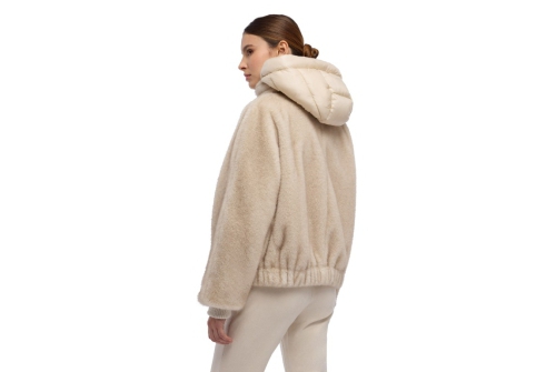 Geox faux fur jacket is cosy and warm with adjustable drawstring waist and hood.