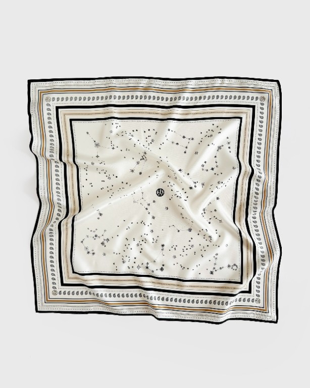 Lescarf is a Swedish fashion brand that make timeless and exclusive scarves in luxurious fabrics. Zodiac Print is an 65cm square scarf made of 100% silk in a beautiful cream/coffee/black colour combination. Effortless style for every season.