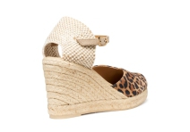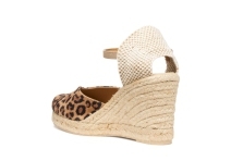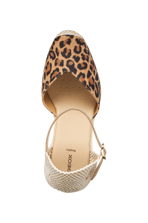 Stylish expadrille with ankle strap and rope-effect wedge by GEOX. It has a suede upper and is in a versatile combination of bold animal print and beige. A Summer in the city staple, breathable and comfortable. 8.5 cms heel height.