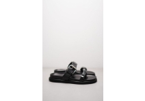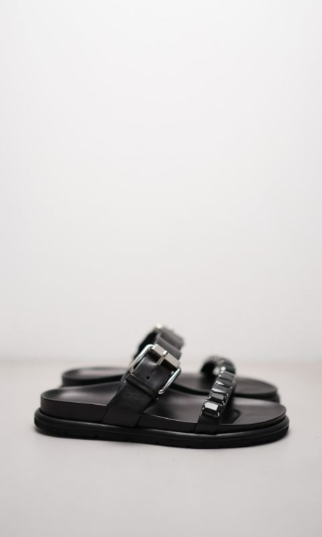 Bringing an edgy classic style to your Summer wardrobe, these flat black sandals from Kennel & Schmenger are made of high quality soft nappa leather with black gemstones and a bold silver adjustable buckle.