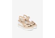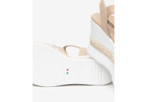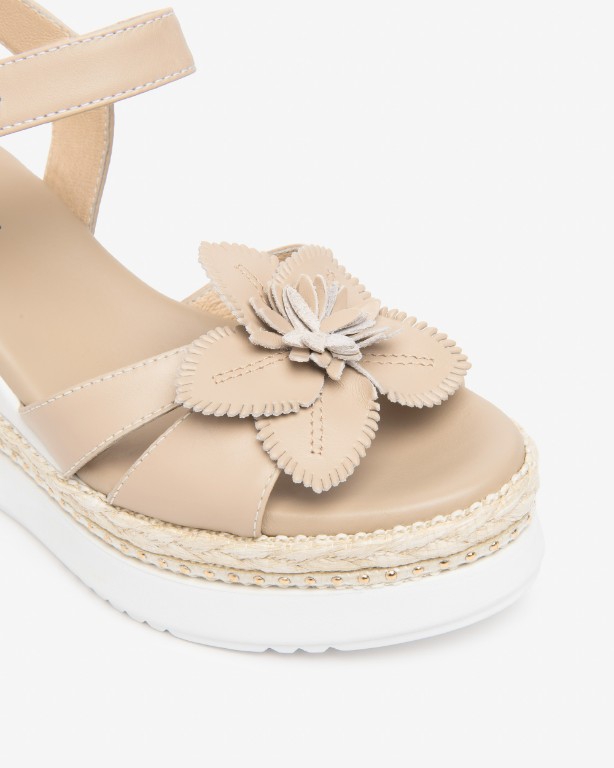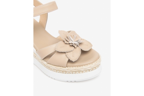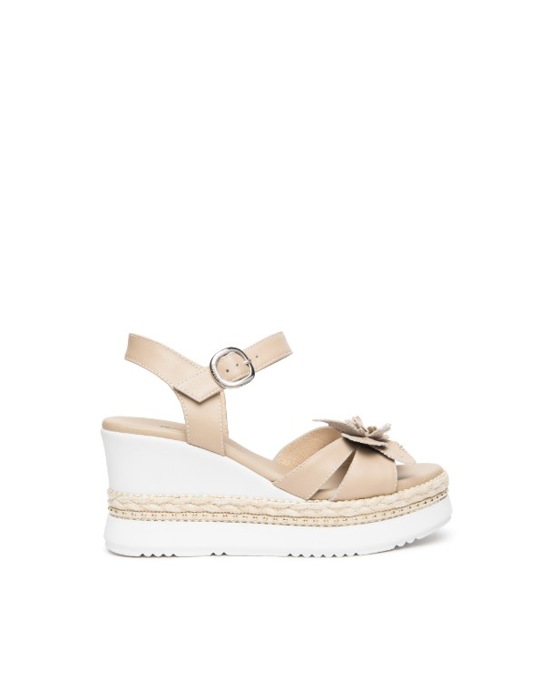 Neutral colours of taupe and white make this the perfect summer wedge to go with all your outfits, decorated with a gorgeous taupe flower.