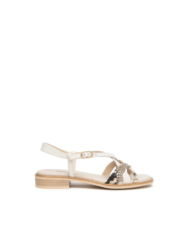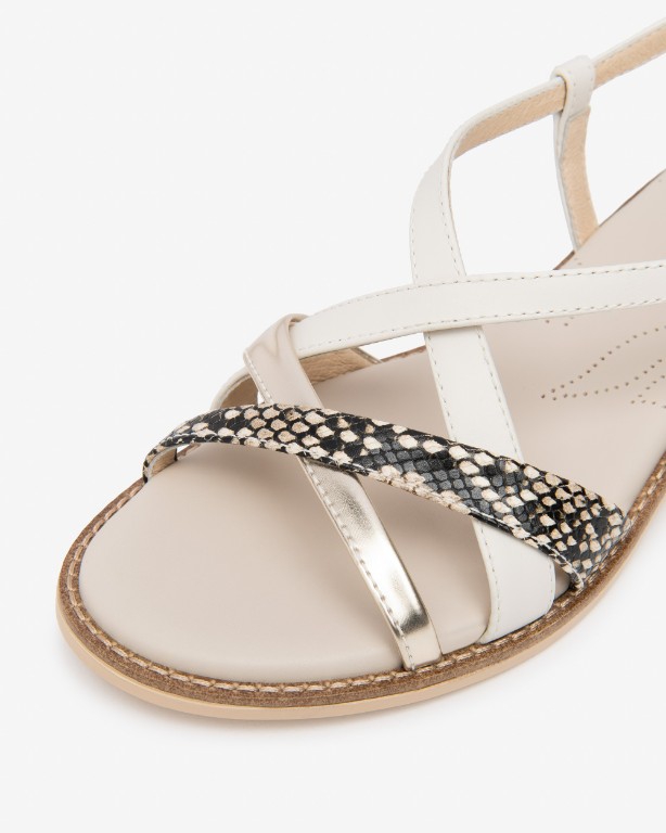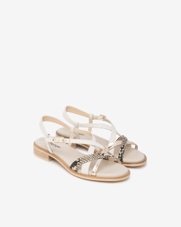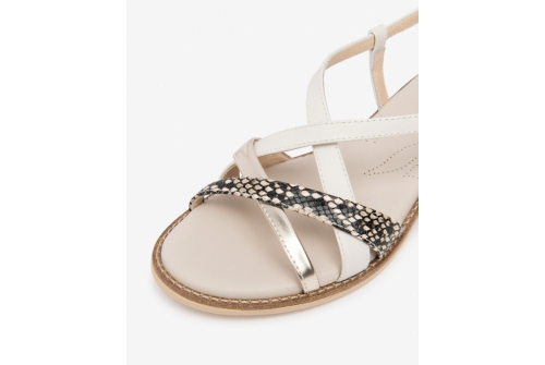 Cream gold and snake print leather makes this a perfect neutral sandal to go with all your summer outfits.