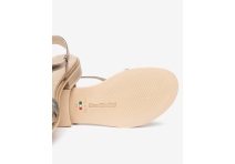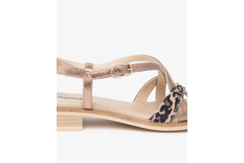 Slide into these sandals, with cross-over straps and a handcrafted wide toe strap. Made in Italy, the playful footbed features a unique botanical print. Bronze , silver and snake print leather makes this a perfect sandal to go with all your summer outfits.