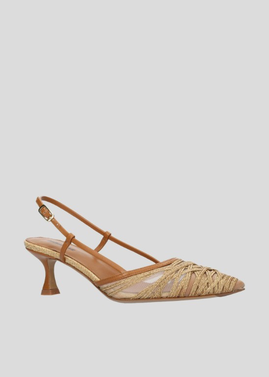 Stylish and versitile little cute shoe with pointed toe, kitten heel and sling back.